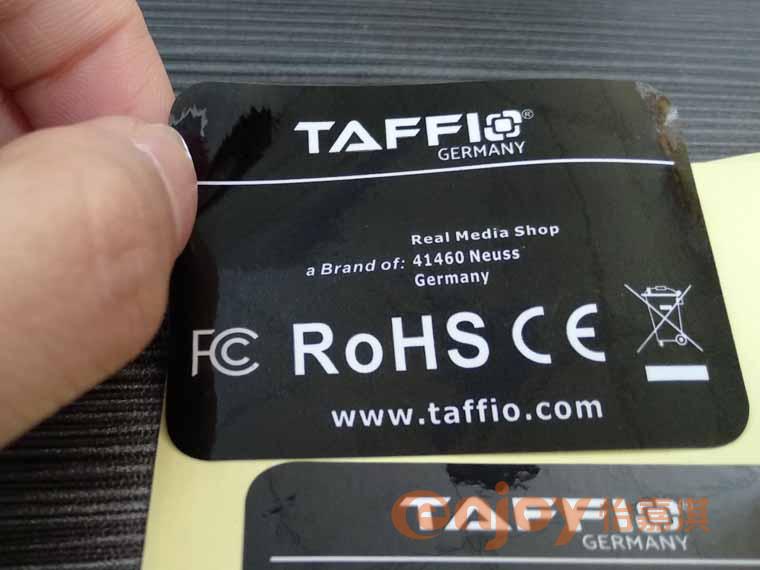 | 標(biāo)簽特性 | 電源標(biāo)簽貼印刷效果精美,印刷清晰、顏色鮮艷不褪色,防水防酸,防堿,膠性特別強(qiáng),厚薄均勻,光澤度柔韌度好 |