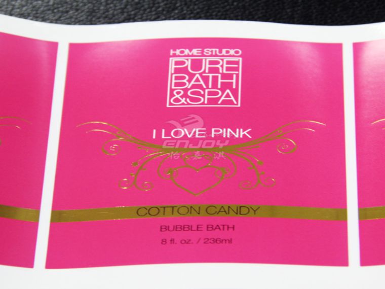 怡嘉淇印刷廠通過材質本身的特殊效果,加上使用特殊工藝印刷,可提高燙金標簽貼紙的檔次與包裝視覺效果,可給該產品帶來了更高的附加值,從而更加提高了商品的價值和賣點!